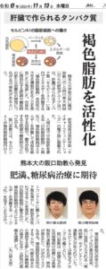 岡川章太先生の論文内容が2024年11月13日の熊本日日新聞朝刊内で紹介されました。 2024.11.22 岡川章太先生の論文がNature Communicationsに掲載されました。 前の記事 令和6年12月7日(土)第35回分子糖尿病学研究シンポジウム開催 次の記事